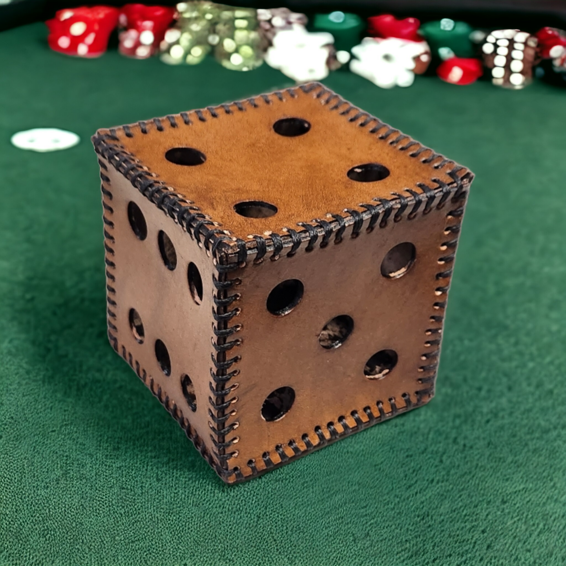 Introducing "Craftsman's Roll" - Elevate your tabletop gaming experience with our meticulously handcrafted leather dice. Each die, standing at an impressive 4 inches in size, is a testament to artisanal craftsmanship, featuring exquisite details and a touch of elegance. Choose from an array of rich and vibrant colors to match your character's style or gaming theme. Whether you're a seasoned player, a collector, or a tabletop enthusiast, our LeatherCraft Dice promise to add a touch of sophistication and luck to your game nights. Roll the dice in style and embark on unforgettable adventures.